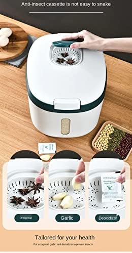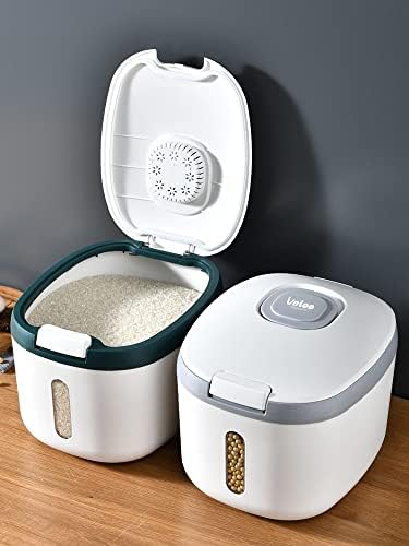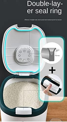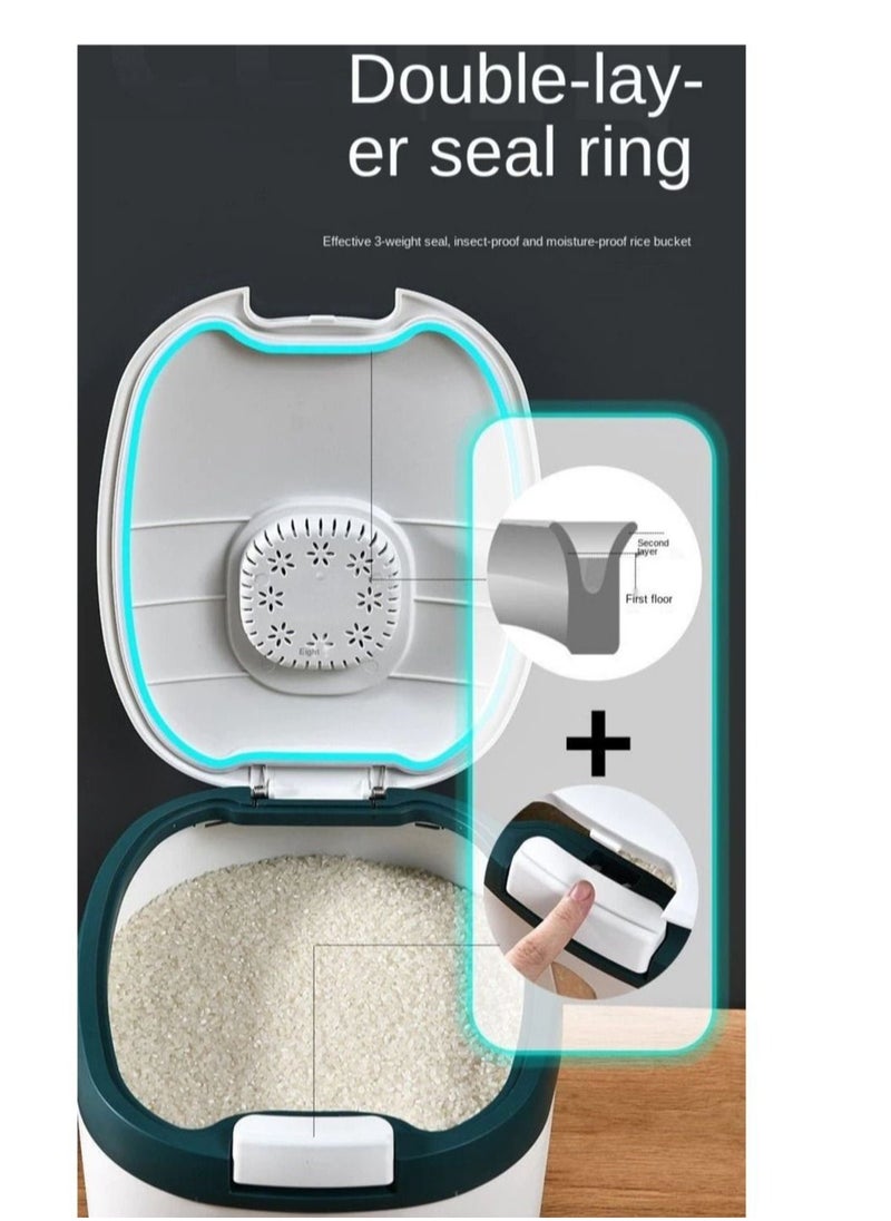 About this item With sealed design, this storage box can protect rice from moisture effectively and reliably. With a large capacity, it can be used to store rice, grain, flour, etc easily and conveniently. Made of high quality plastic material, it is durable and reusable. The 15Kg storage box is 33 cm in length, 25 cm in width and 27 cm in height. It can be used for home, kitchen and it not only can be used to store rice but also for grain, flour, cat food, dog food, etc.