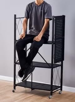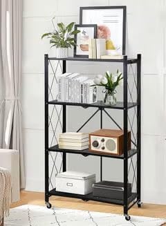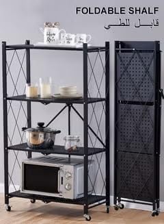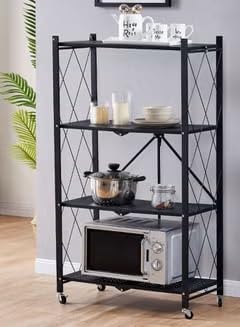 About this item KITCHEN ORGANIZER WITH 4 FOLDABLE SHELVES, IRON FRAME AND WHEELS: Perfect for your kitchen space PERFECT ORGANIZATION: This kitchen organizer helps you make the most of your space thanks to four sturdy, foldable shelves. Space Saving: The foldable shelves design allows you to utilize space efficiently without taking up too much space. Compact Design: Foldable construction allows for space-saving storage when not in use. Ease of movement: Equipped with strong wheels that make it easy to transport and move within the kitchen or even between rooms. Elegant Design: It features an elegant and modern design that adds a touch of beauty and elegance to your kitchen.