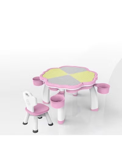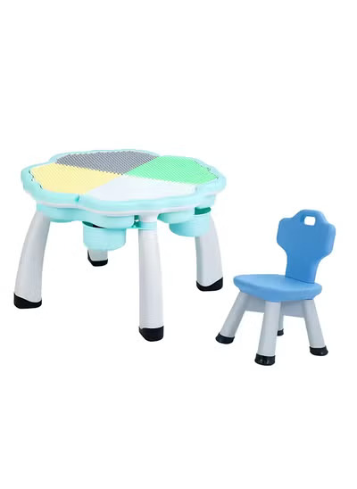 EMZJ Kid’s 4-in-1 Multi-Activity Table – Play Game Desk for Lego, Large Construction Bricks, and Educational Toys with 1 Chair for Toddlers to Preschoolers (Ages 3-10)